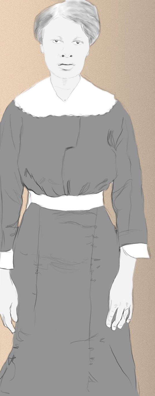 Drawing by visual artist Asha C. Bell. Emmaline's Great-granddaughter. Copyright 2021, Asha C. Bell. All rights reserved.